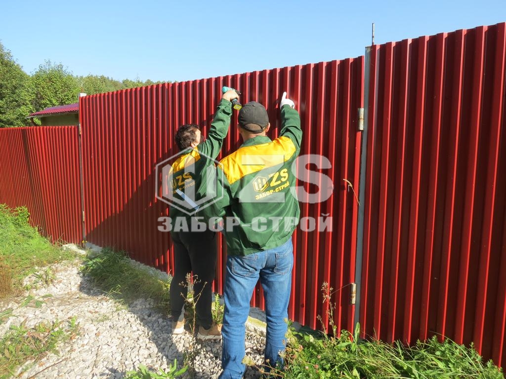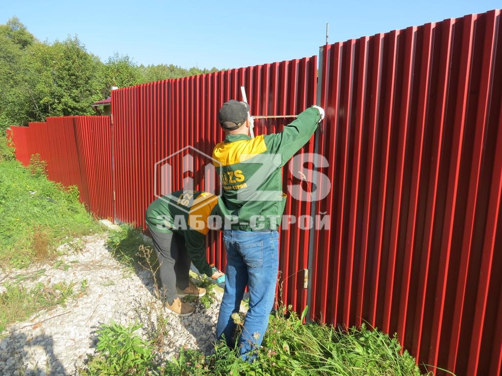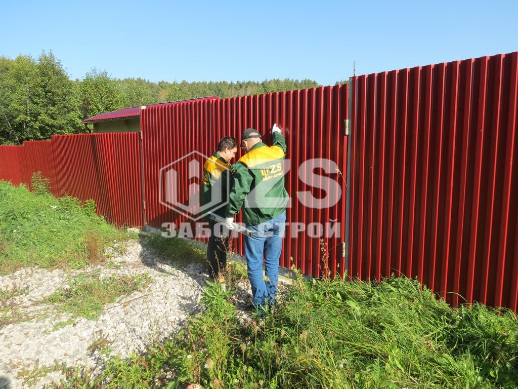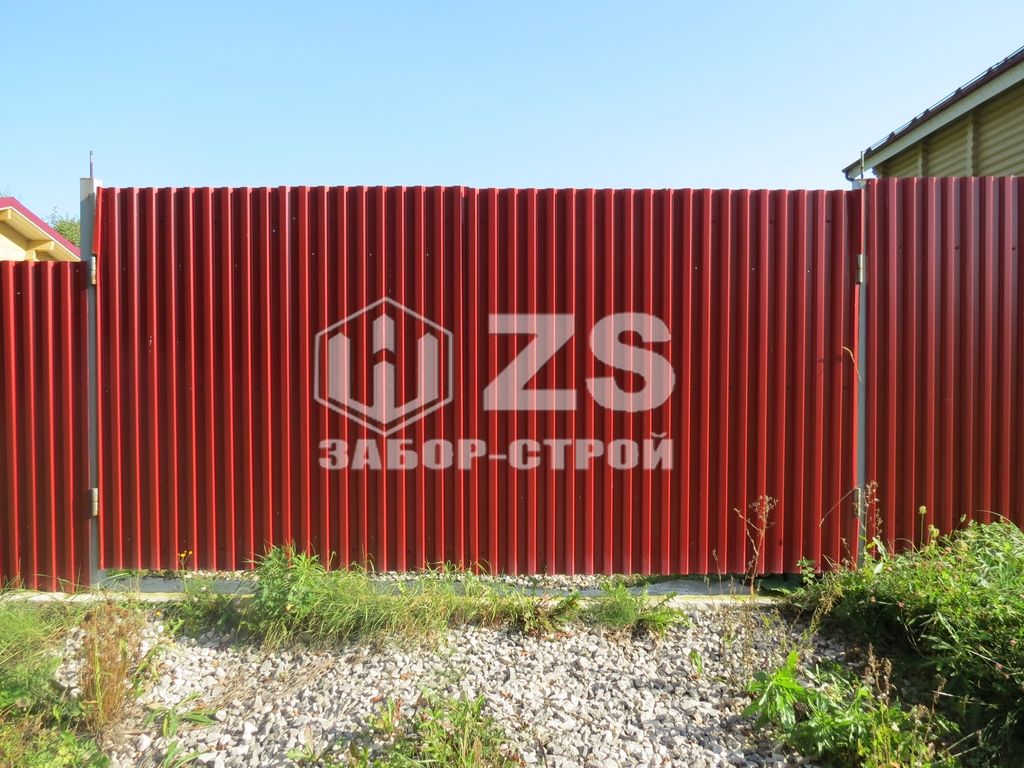 - забор из профнастила с утрамбованным щебнем 90 метров