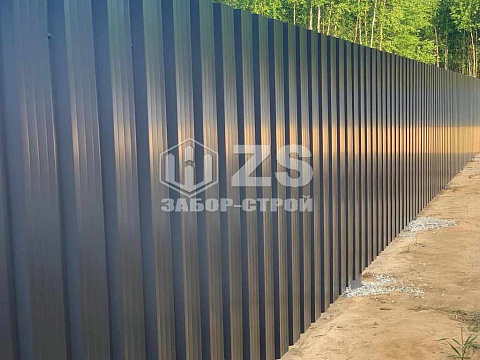 - Забор на столбах с утрамбовкой щебня из профнастила 42 метра