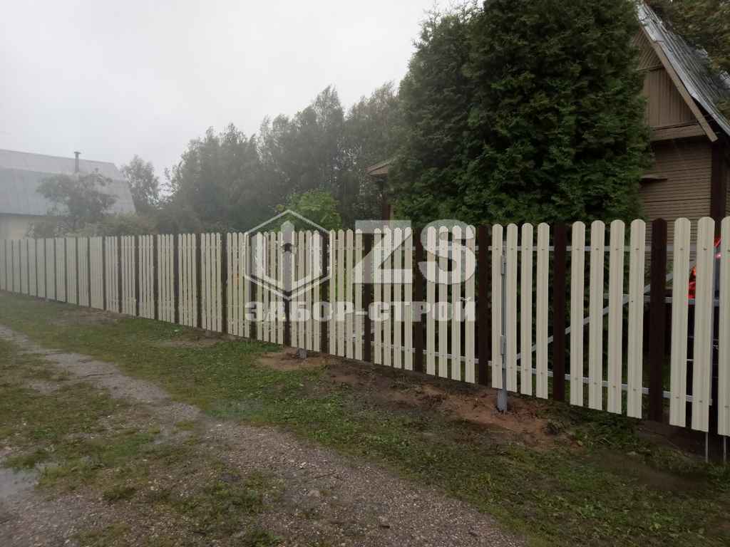 - Забор на забивных столбах из евроштакетника 30 метров